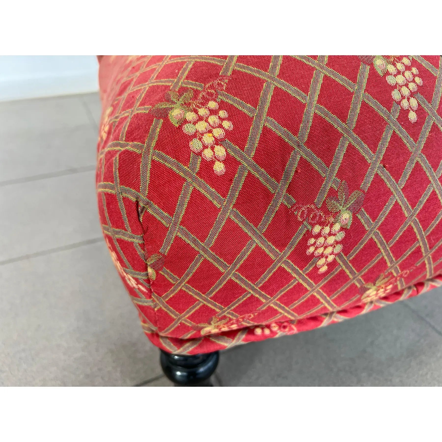 Condition: Antique condition consistent to age, pulled threads on backrest. Please observe the pictures carefully.