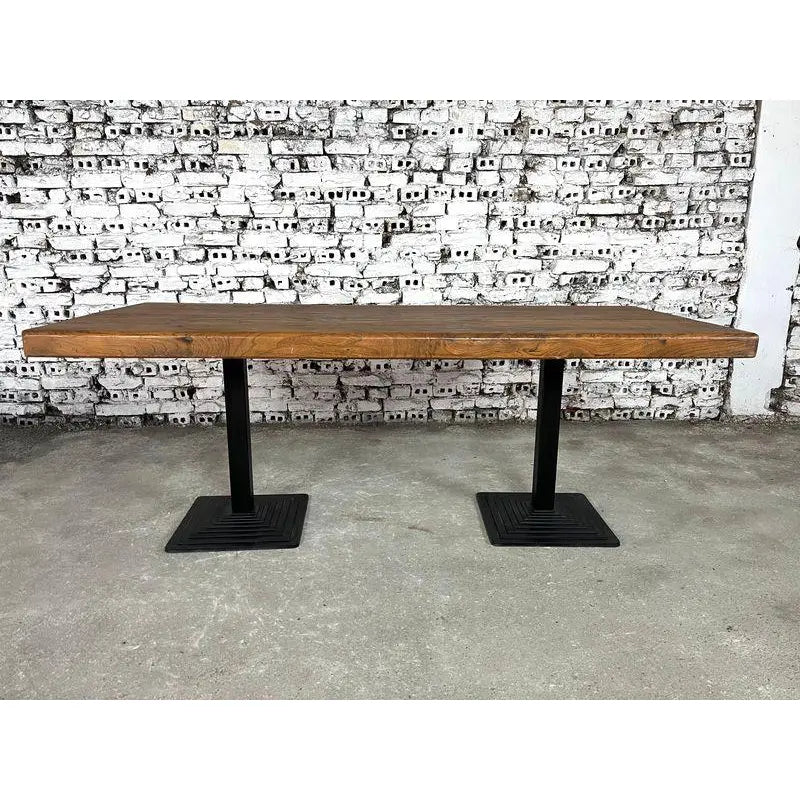 Cast Iron and Oak Industrial Dining Table