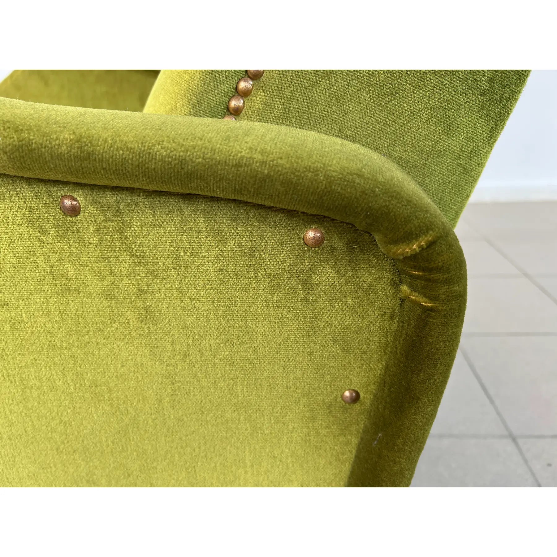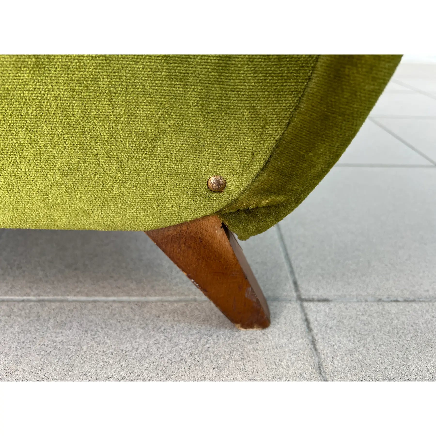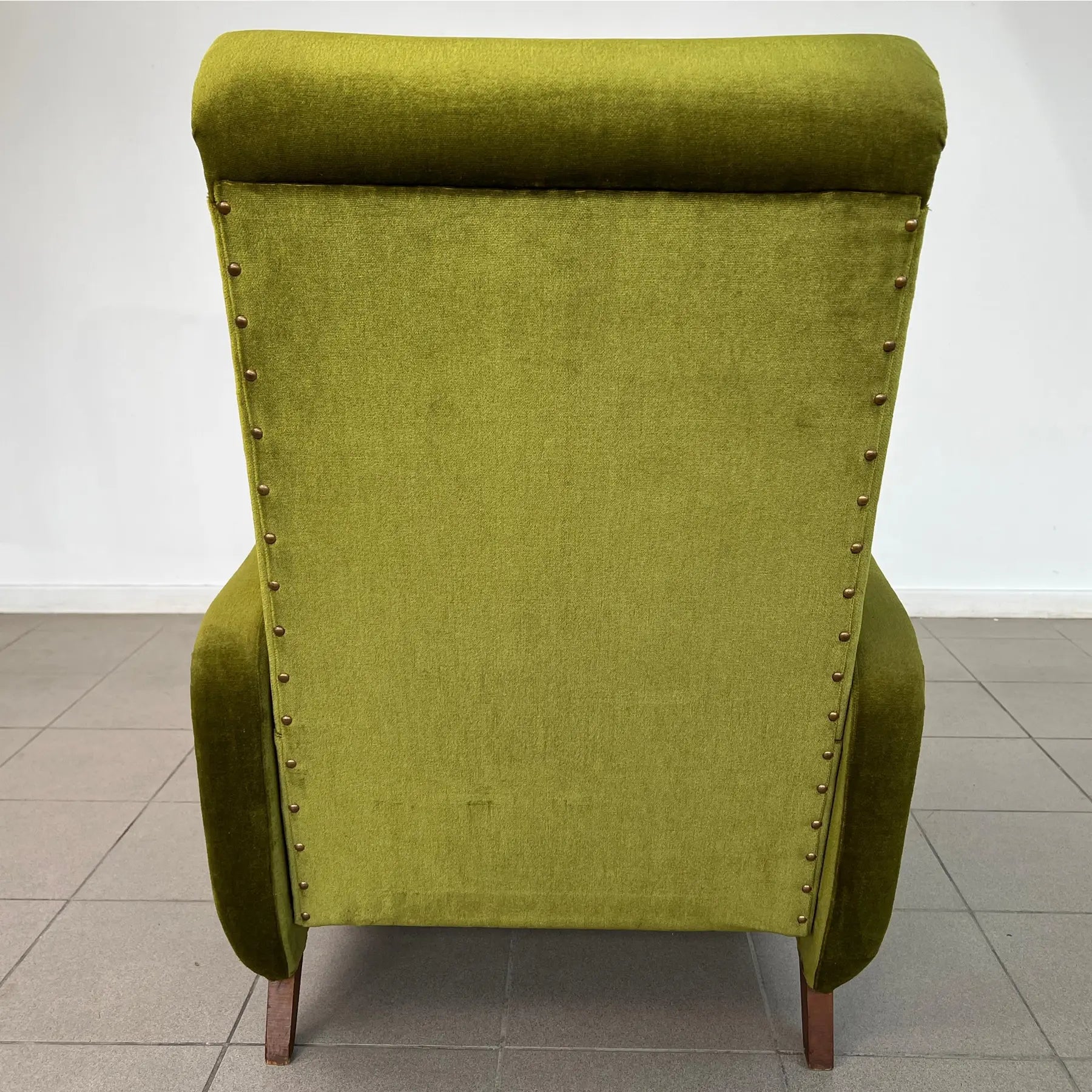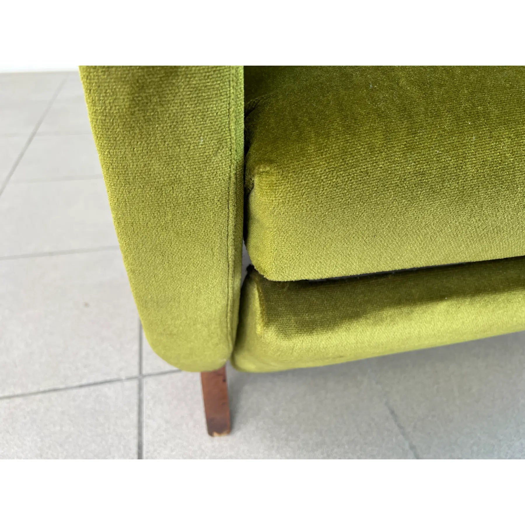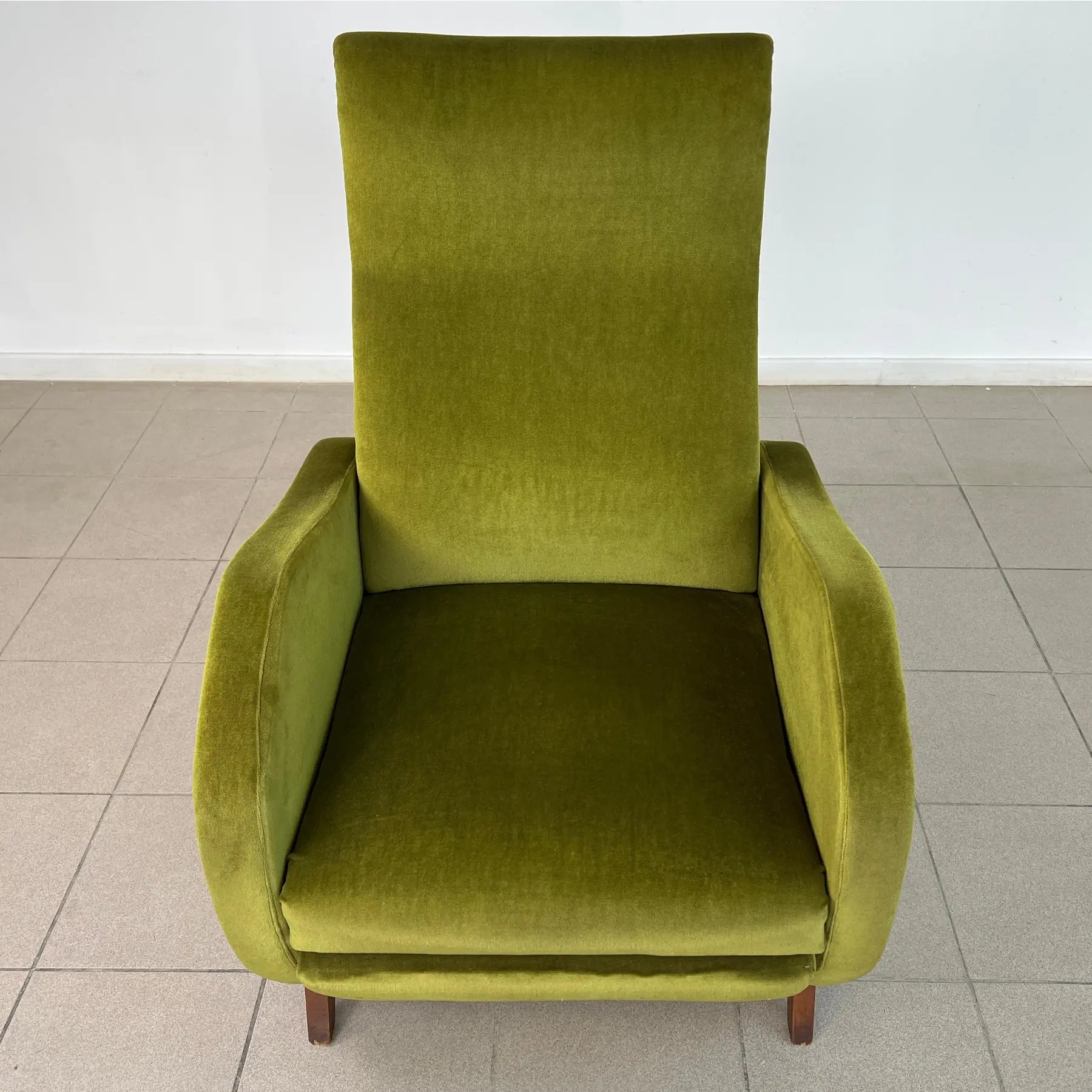 Vintage Dutch reclining armchair with retractable footrest from 1960s. Upholstered in original green velvet fabric. Comfortable and stylish.
