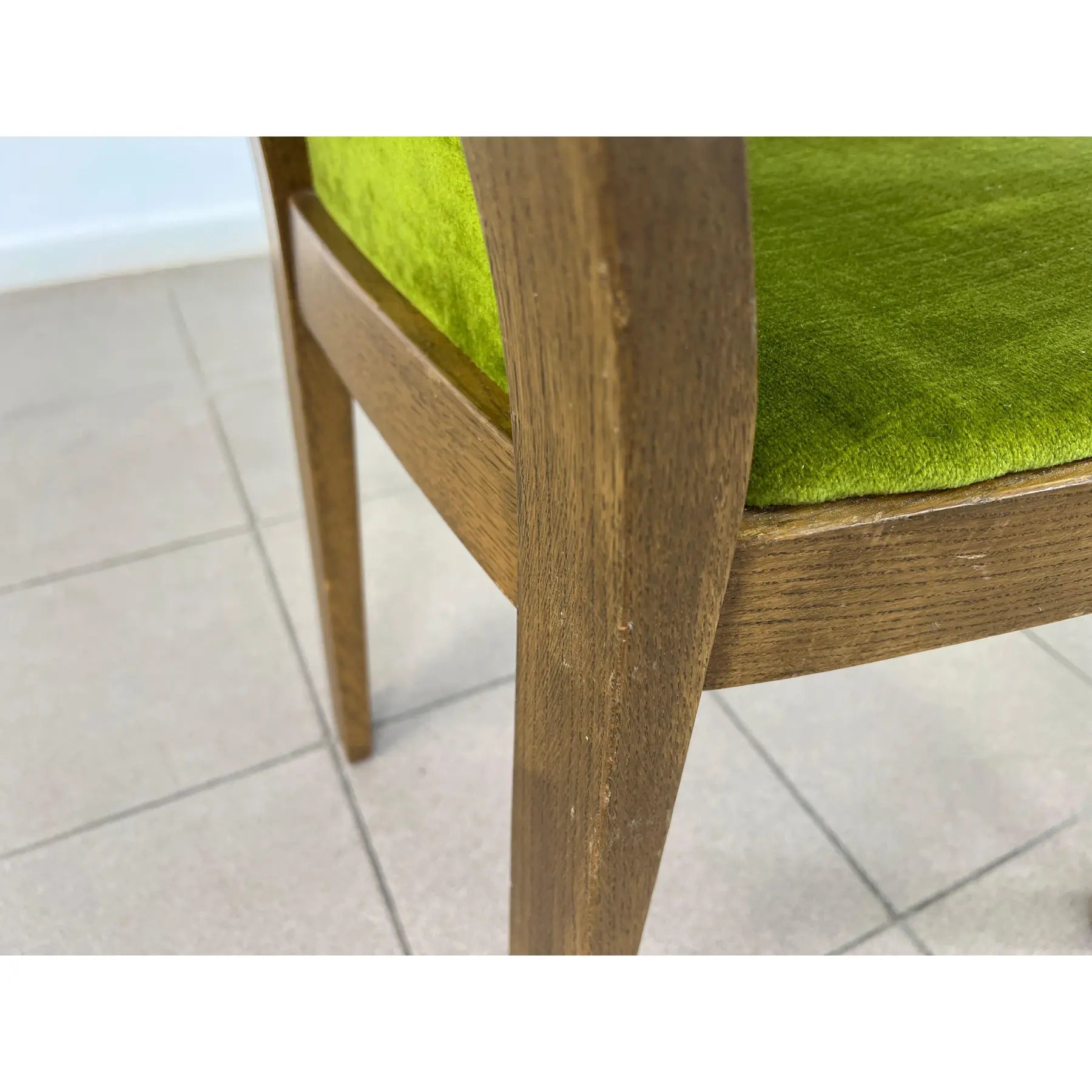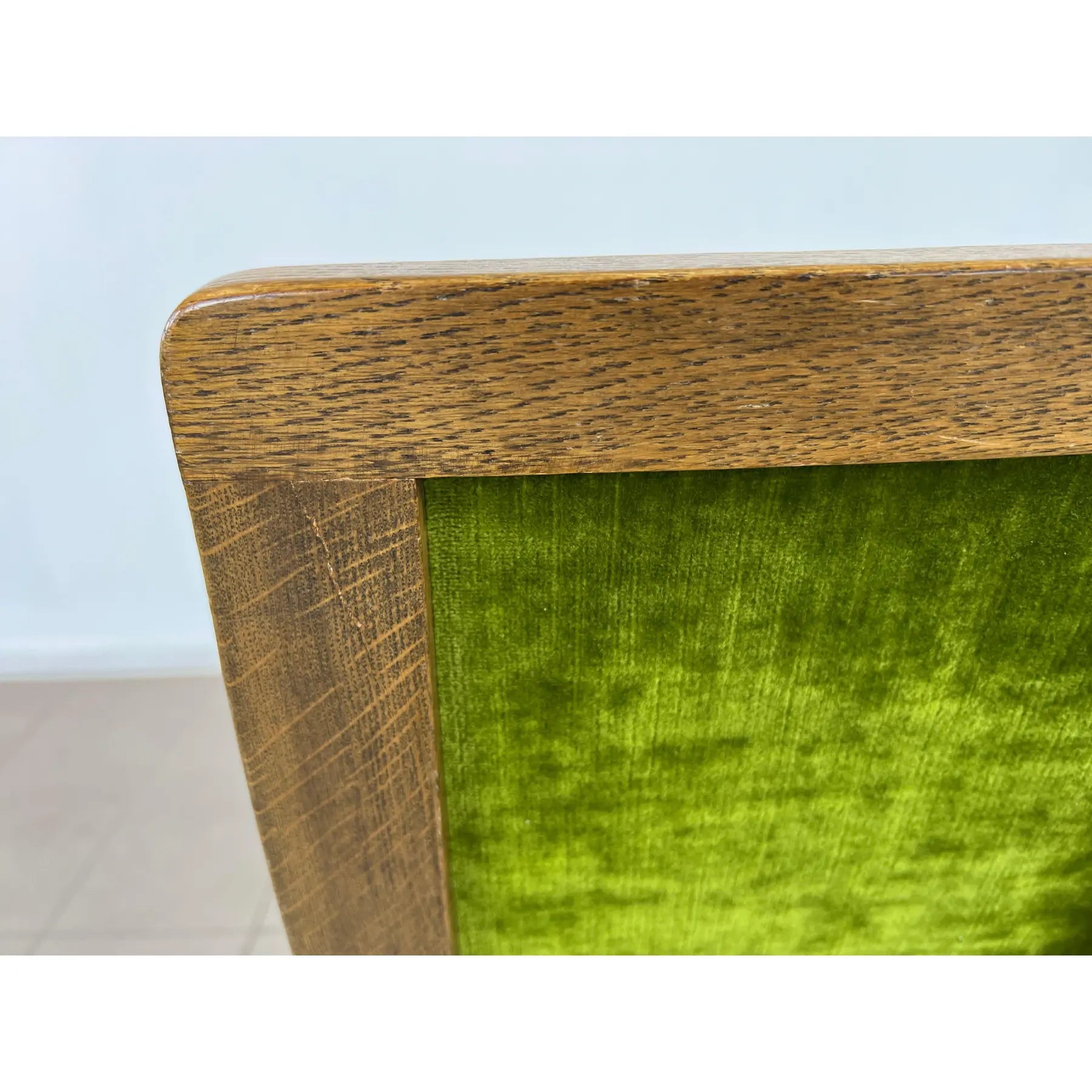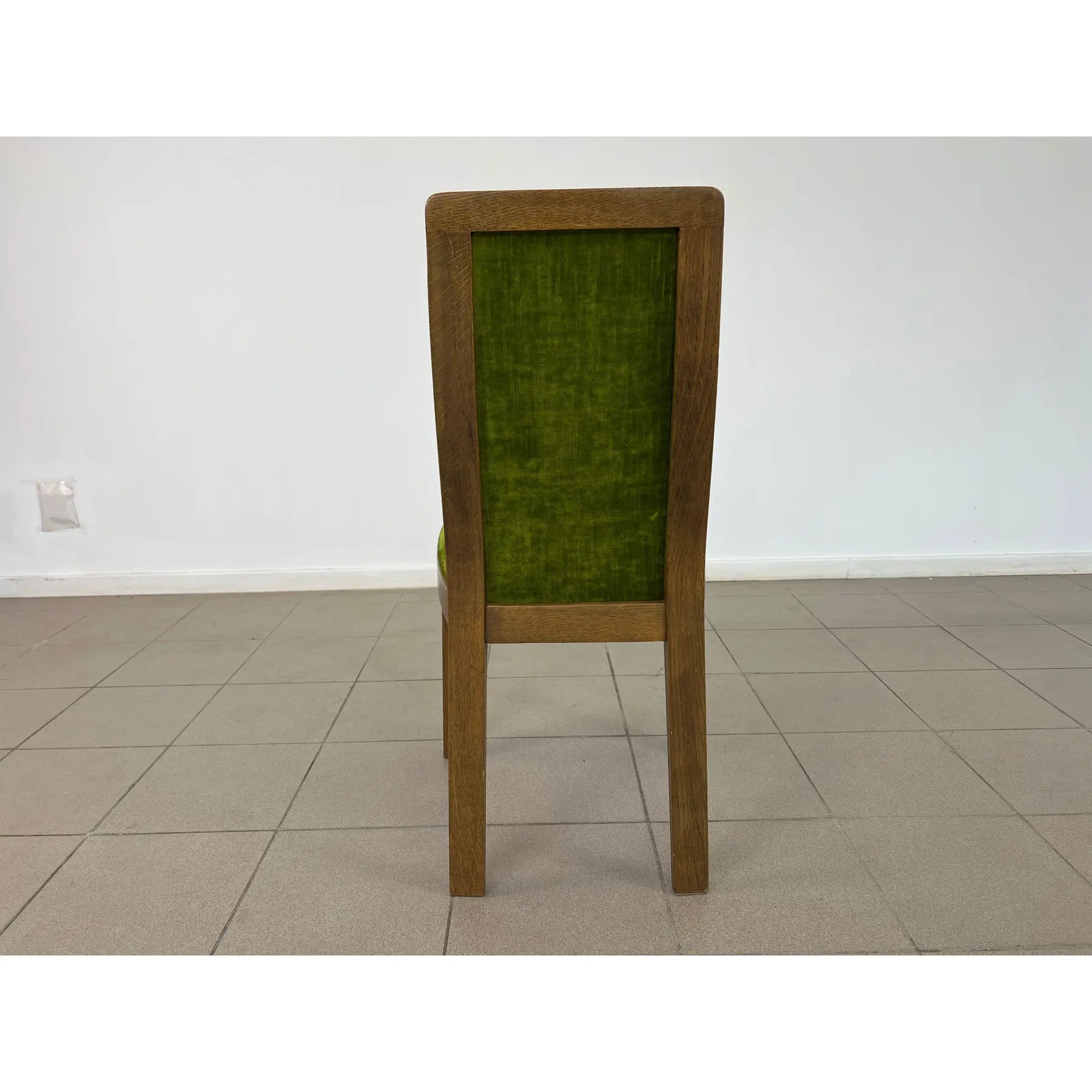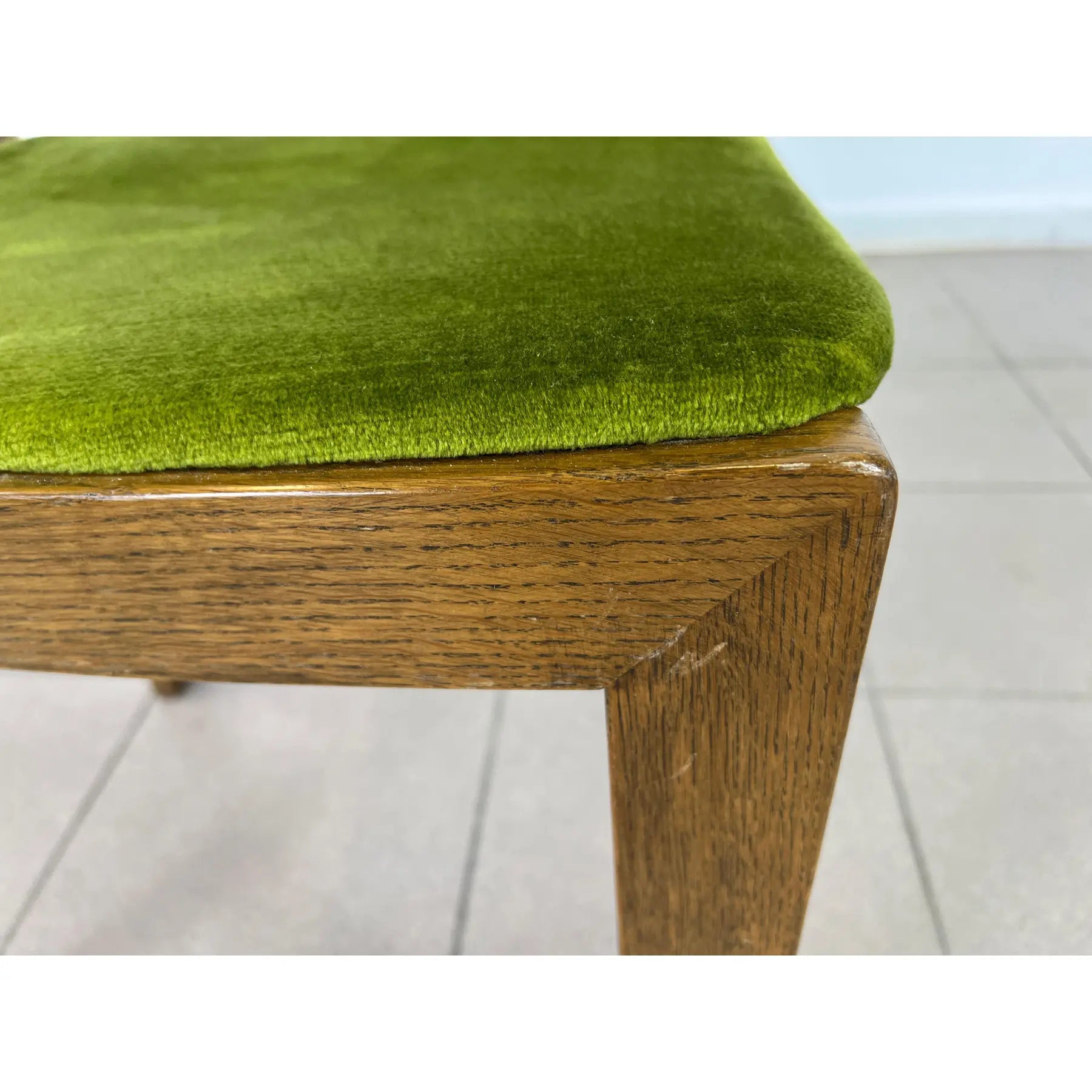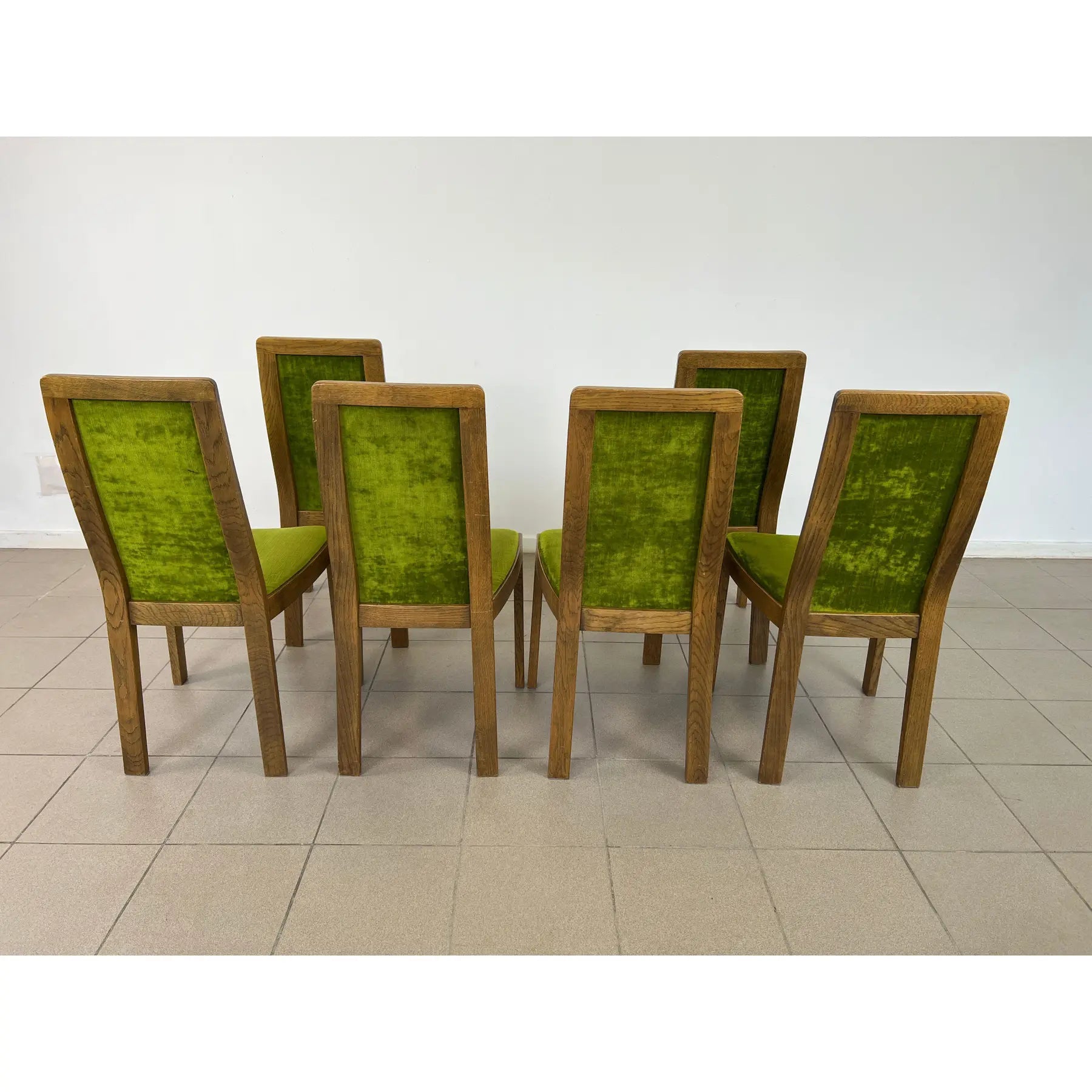 Set of 6 Mid-Century Modern Scandinavian dining chairs with high backs. Upholstered in original green mohair type fabric. Solid wood frames and legs. The chairs have straight, brutalist clean lines typical of mid-century design. A wonderful addition to your interior.