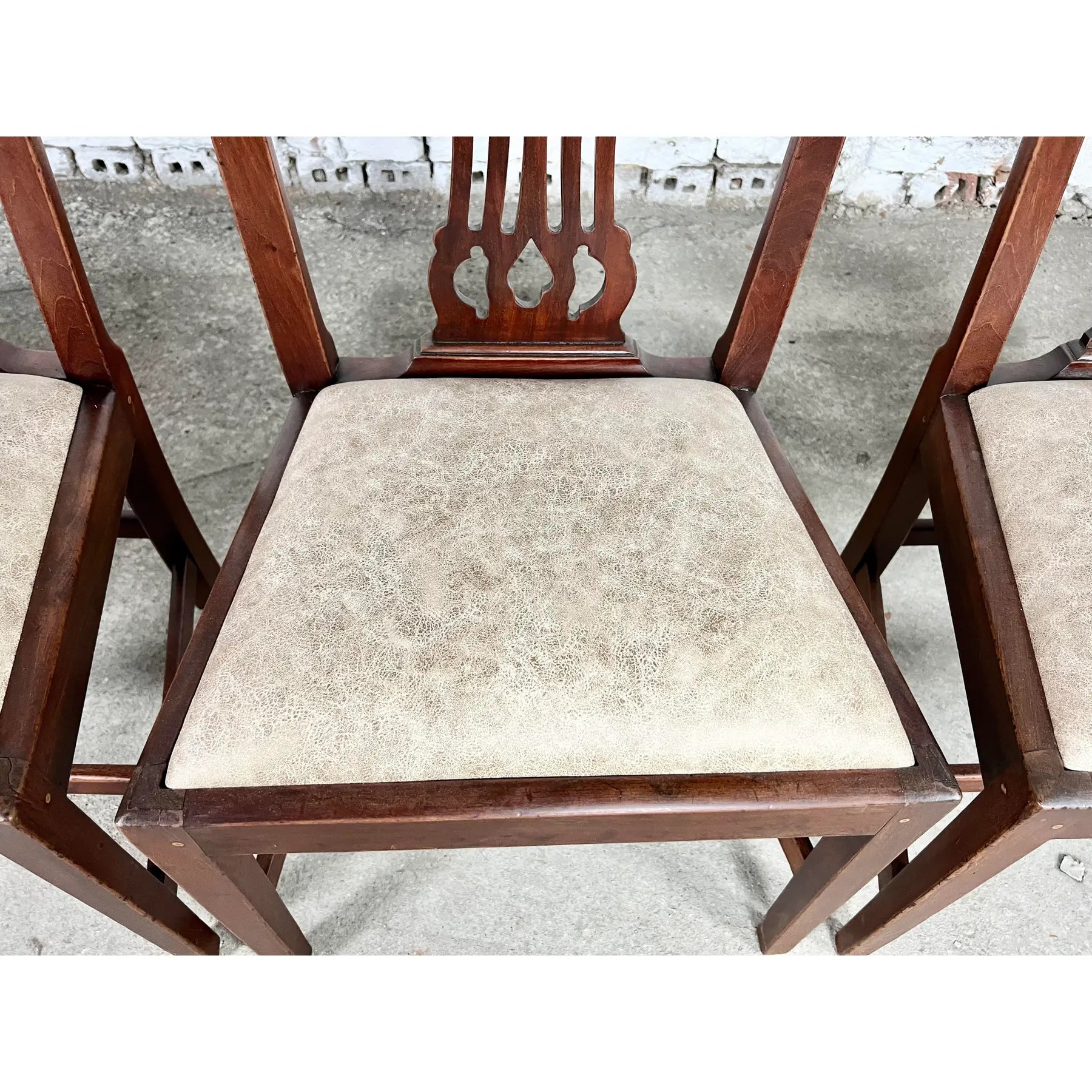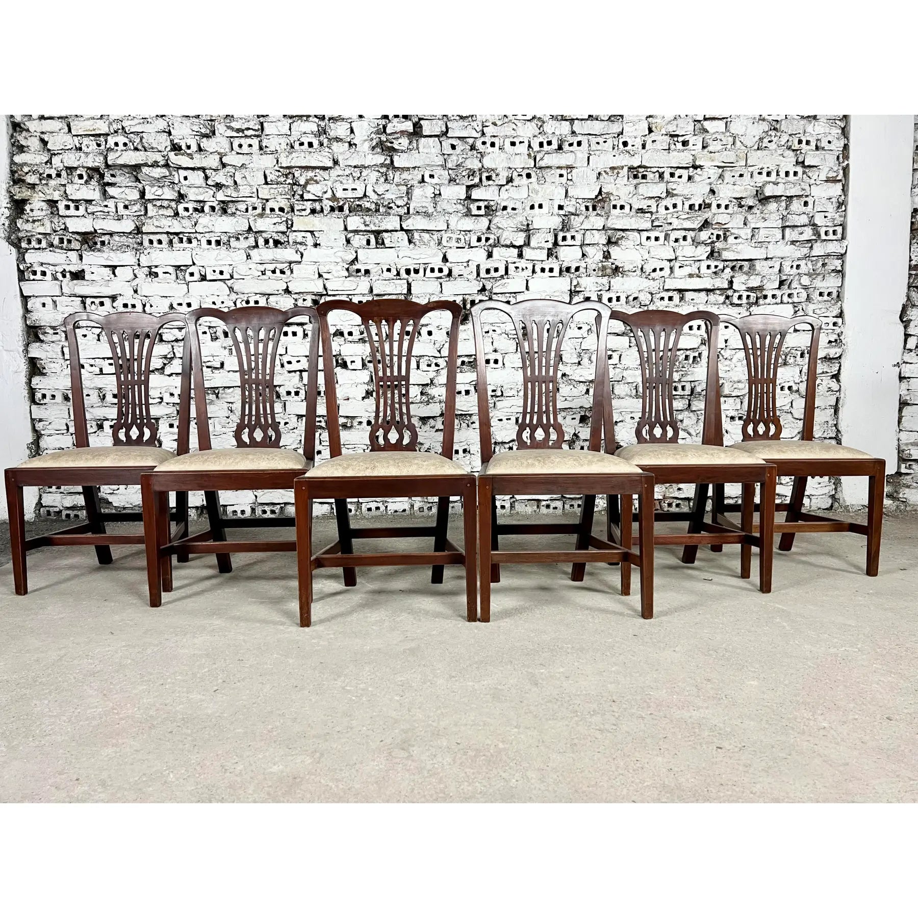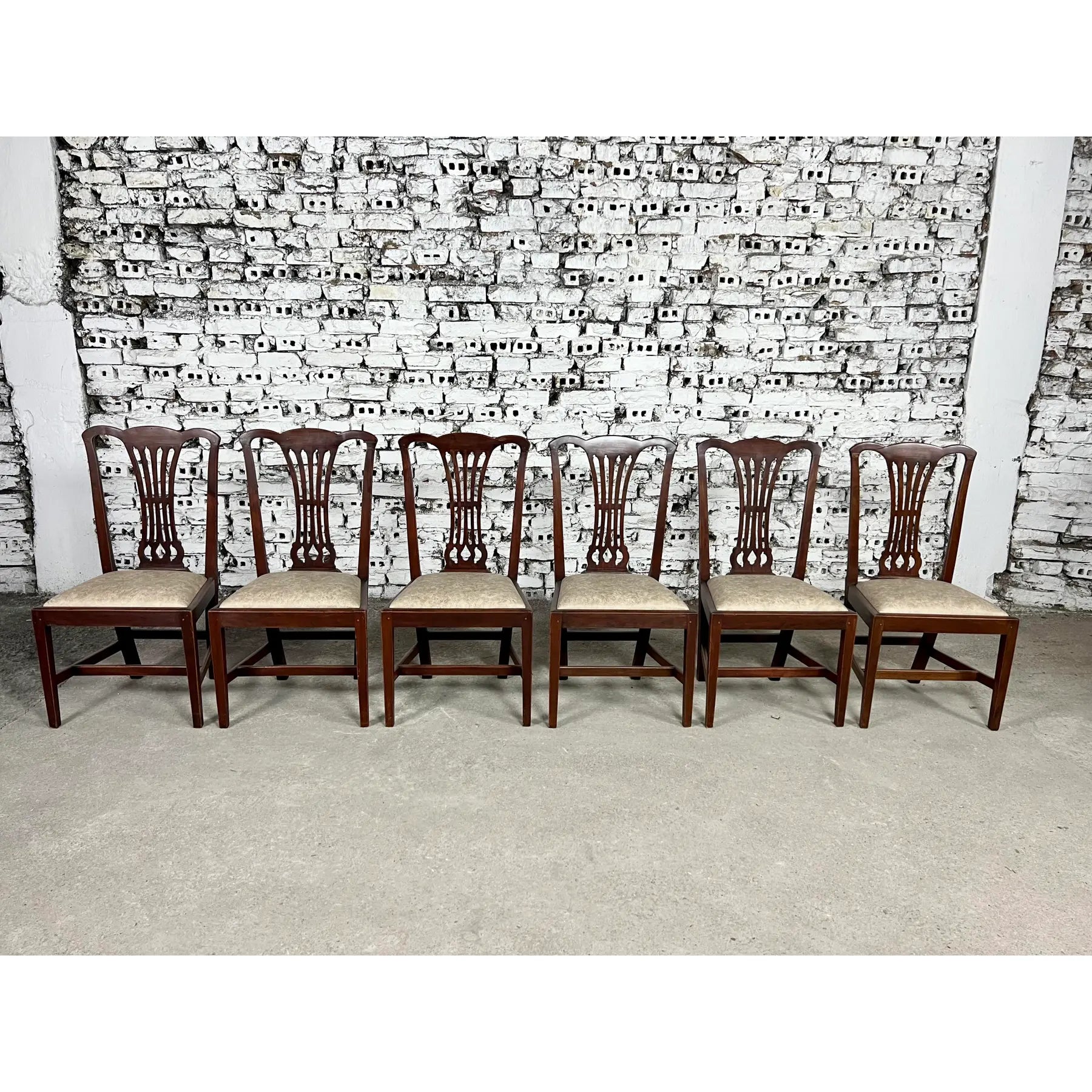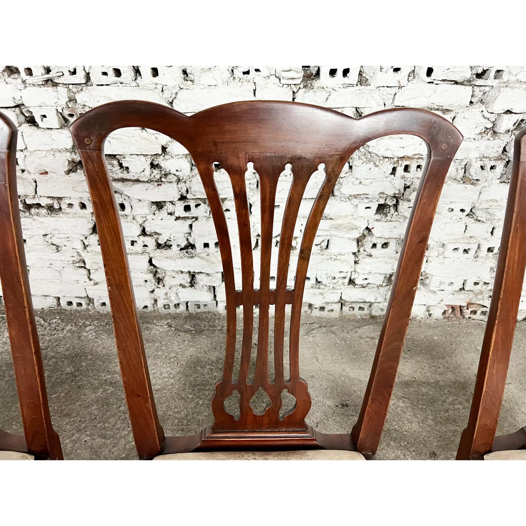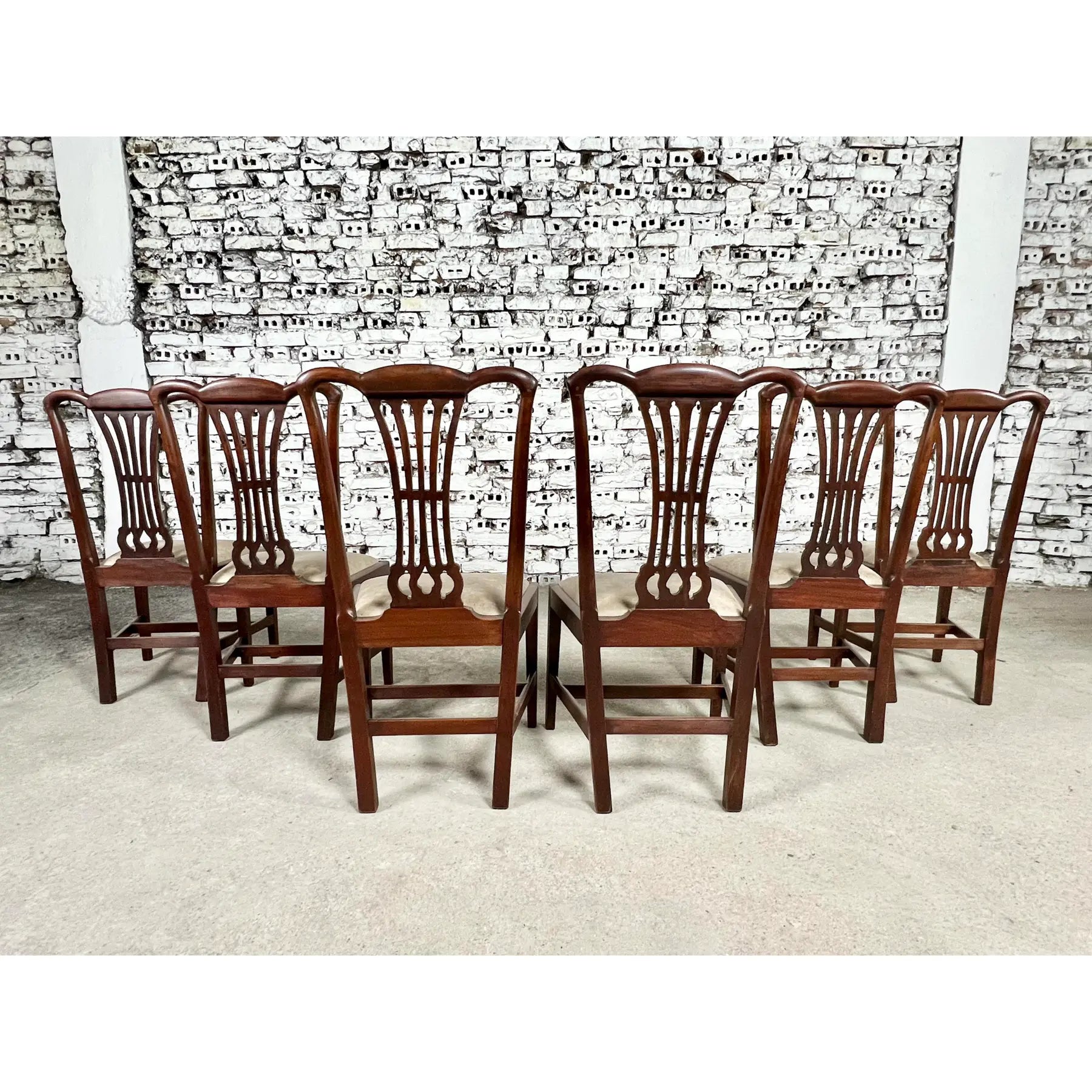 An exceptional set of 9 Vintage English Georgian or Chippendale Style Side Dining Chairs.