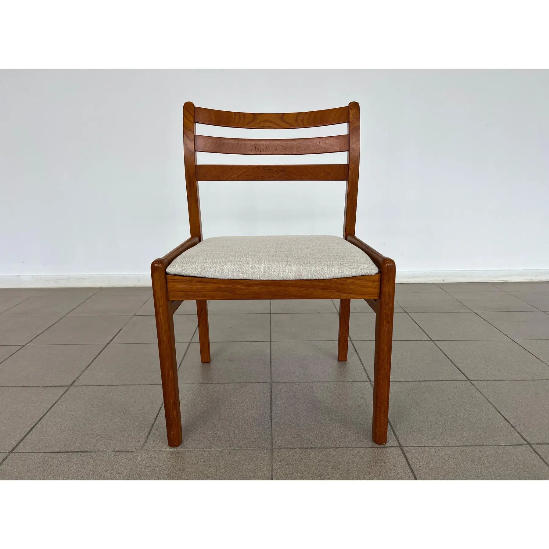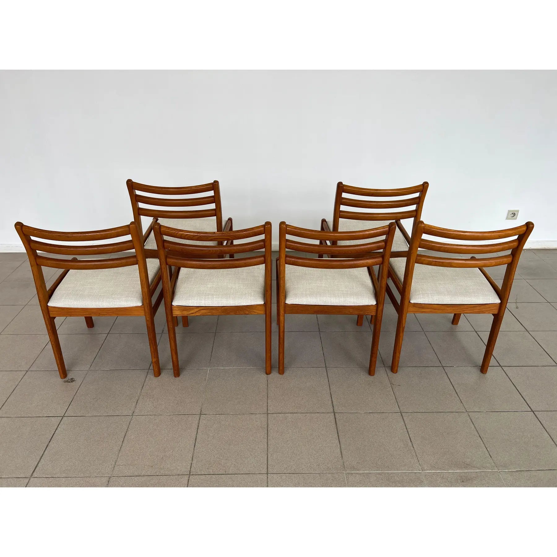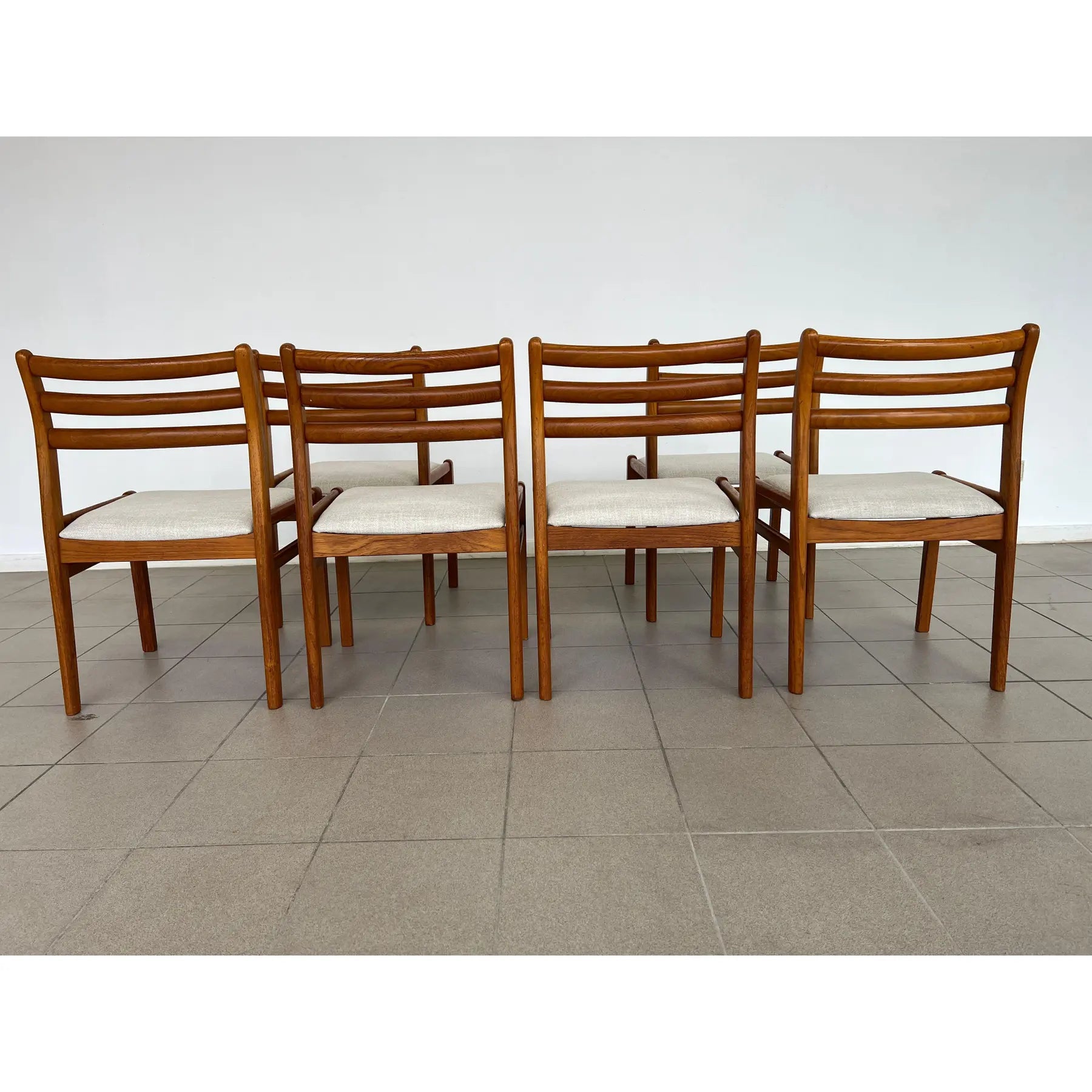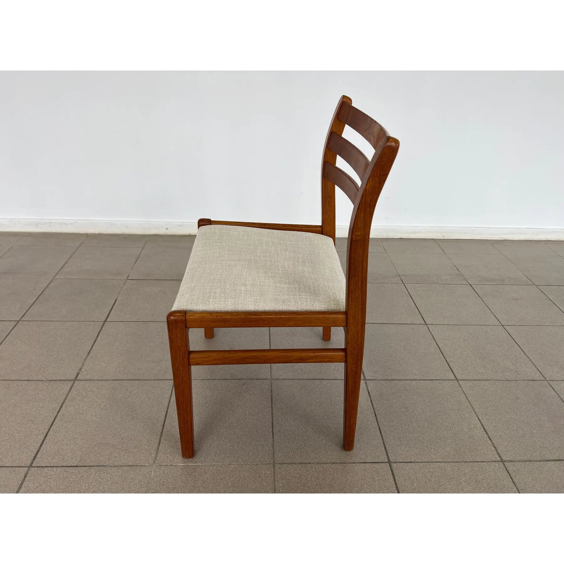 Set of 6 Mid Century Modern Scandinavian dining chairs. Solid wood frames and newly reupholstered seats. Stable and in very good condition with minimal signs of wear. A gorgeous addition to any interior.