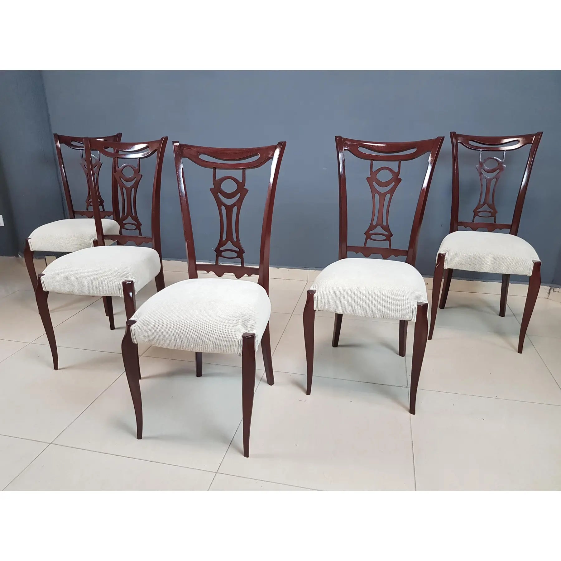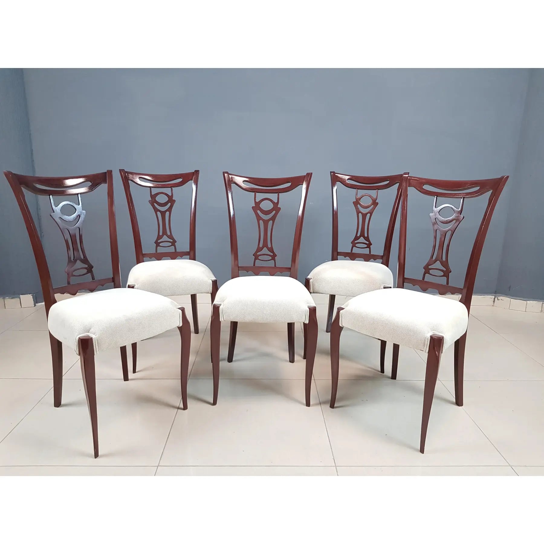 Italian Vintage Modern Dining Chairs in the Style of Paolo Buffa Newly Upholstered - Set of 5