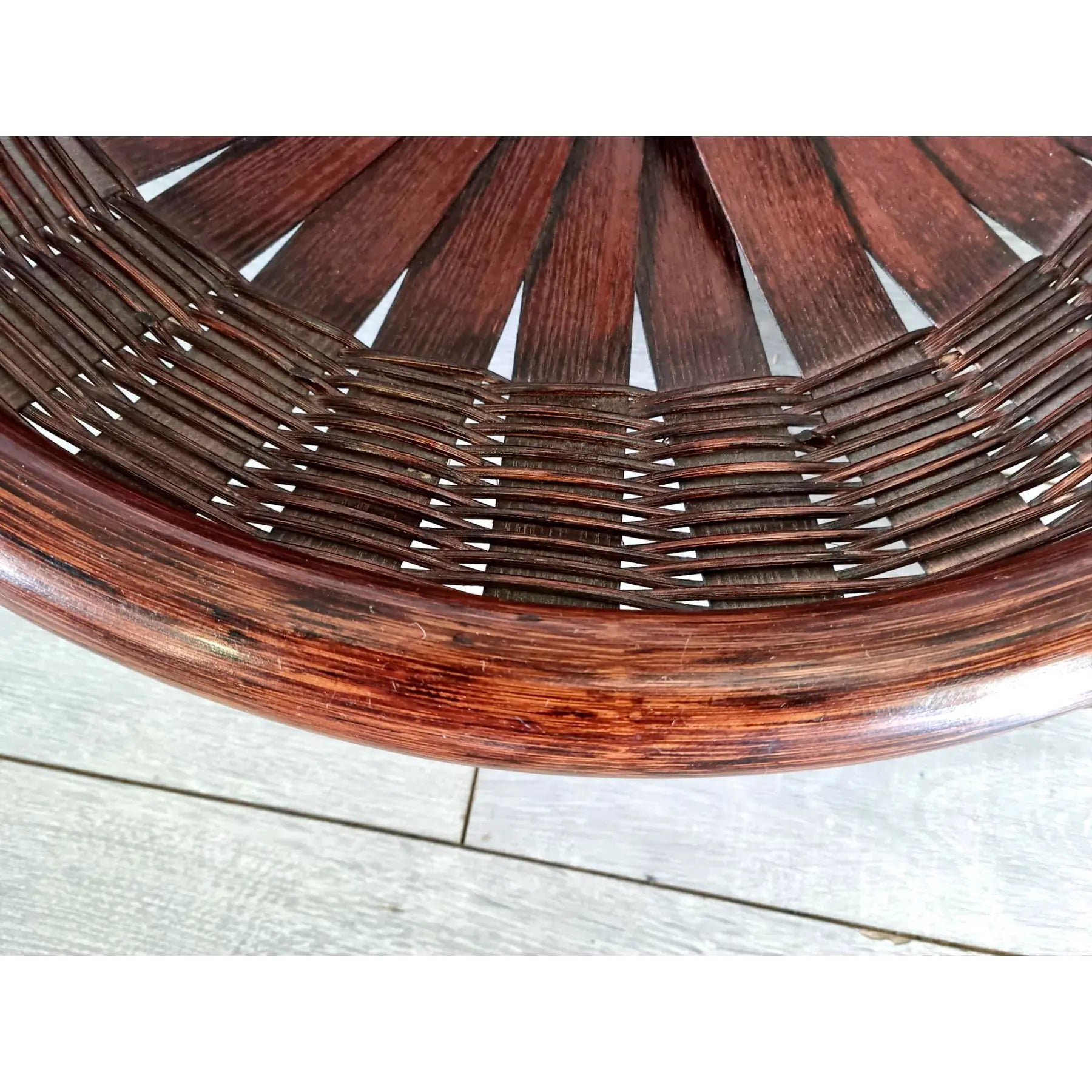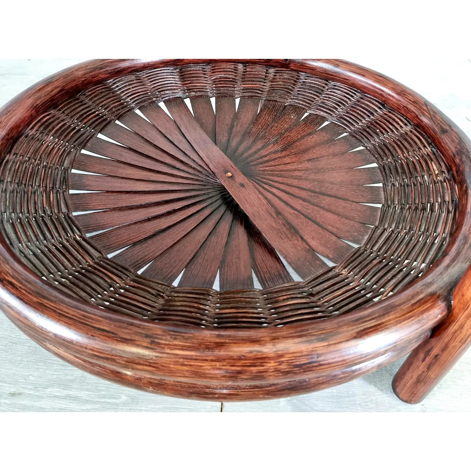 Vintage Three-Tiered Round Bamboo Cane Coffee Side Table
